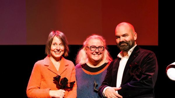 Tre lykkelige prismottakere: Gro Dahle, Trygve Riiser Gundersen og Ingeborg Arvola mottok hver sin Bragepris på kveldens utdeling. Foto: Lina Hindrum